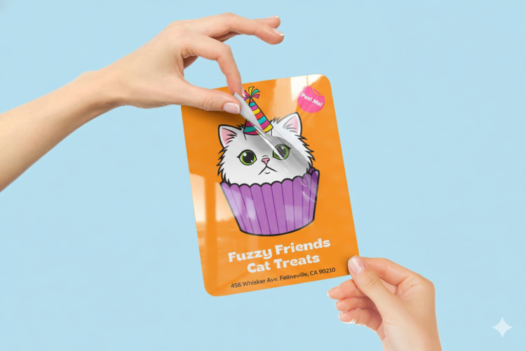 - Mục đích sử dụng: Die Cut là lựa chọn cổ điển và phổ biến nhất, hoàn hảo cho các mục đích tặng kèm (giveaways), chèn vào bao bì sản phẩm, túi quà sự kiện (swag bags) hoặc bán hàng hóa (merch) cá nhân.
